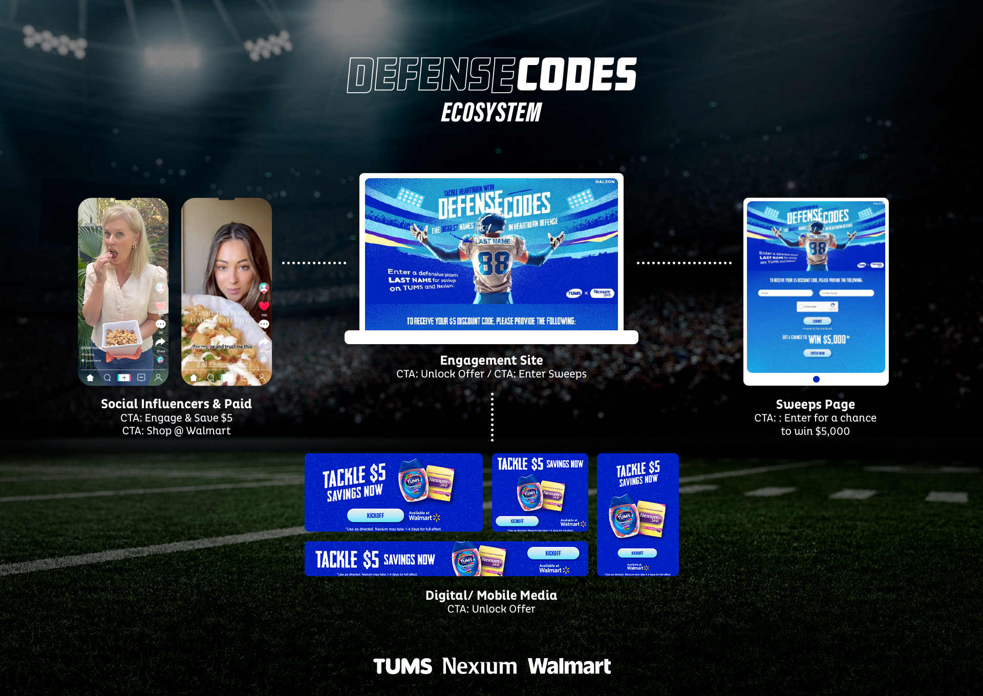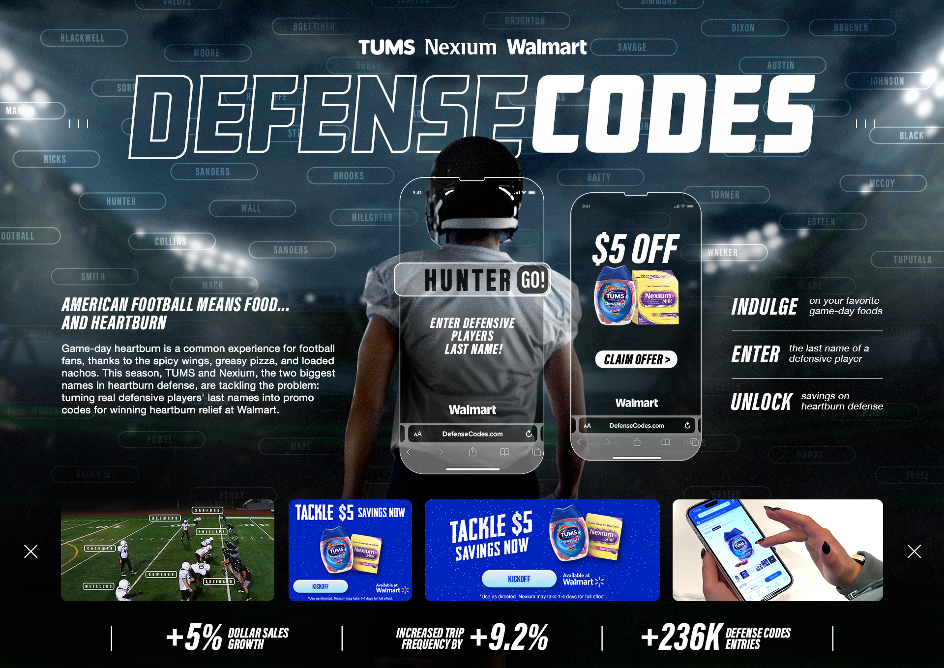 Game-day heartburn is a common experience for football fans, thanks to the spicy wings, greasy pizza, and loaded nachos. In 2025, TUMS and Nexium, the two biggest names in heartburn defense, tackled the problem: turning real defensive players' last names into promo codes for winning heartburn relief at Walmart. This program